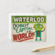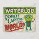 A funny Waterloo Iowa vintage travel design featuring a friendly robot with fun retro style text that says, "Waterloo, Robot Capital of the world!"