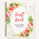 This beautiful and elegant wedding guest book features watercolor watermelon, pomegranate, strawberries, cherries and foliage on a gold geometric frame. The text combines handwritten script and serif fonts for a stylish and modern look. This is perfect for a spring or summer rustic wedding.
