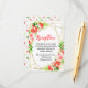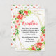This beautiful and elegant wedding reception enclosure card features watercolor watermelon, pomegranate, strawberries, cherries and foliage on a gold geometric frame. The text combines handwritten script and serif fonts for a stylish and modern look. This is perfect for a spring or summer rustic wedding.
