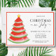 This Christmas in July Party Invitation is decorated with a red watercolor watermelon tree.