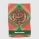 Watermelon crest badge surrounded by a strap and buckle over tartan background. Two custom text fields.