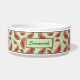 Destei's red and green colour watermelon fruit slice pattern on a light green background colour. There is also a personalizable text area for a name or other custom text such as "dinner" or "water", for example.