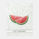 Destei's watermelon fruit slice illustrations in red and green colour scheme. The background has a pattern of green colour dots. There is also a personalizable text area for a name or other custom text.