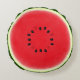 The front of this pillow is a juicy watermelon half with rind, seeds, and seed holes. The back shows the striped skin fading to a pale field spot.