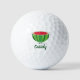 Personalised golfballs with a name and a cute, cartoon, watermelon.