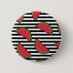 Watermelon on Black & White Stripes Pattern 6 Cm Round Badge
