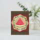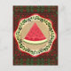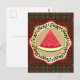watermelon on olive plate with Palestinian tatreez Postcard