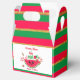 It's a beautiful and cute watermelon girl's 1st birthday favour boxes. Design features a cute watermelon slice kawaii smiling cartoon face with bow, ribbon, hearts and on white, golden coral red green stripes on green background. Perfect for summer birthday party. you can easily change the name and age number by clicking Zazzle's customisation option.