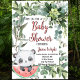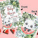 This beautiful watercolor design features an adorable Panda bear enjoying a large slice of watermelon while sitting among the tropical leaves in the jungle. It features a variety of green, black and pink colour palettes with a mixed combination of beautiful decorative fonts. The invitation is fully customisable, so you can add your own personal touches.