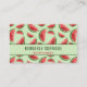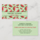 Business card design featuring Destei's red and green colour watermelon fruit slice pattern on a light green background colour. Ideal for anyone working within the food industry such as nutritionists.