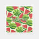 Ripe red watermelon slices. Seamless pattern. Custom background colour. Custom text.