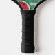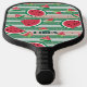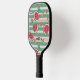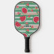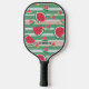 This pickleball paddle design features a watermelon related pattern with green and pink stripes emphasizing the joy and energy of summer season.