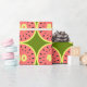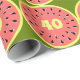 Design with a retro touch inspired by a watermelon featuring pink circle and seed patterns on a dark green background. A customisable design for you to personalise with your own text, images and ideas. An original digital art image.