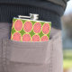 Design with a retro touch inspired by a watermelon featuring a pink circle and seed pattern on a dark green background. A customisable design for you to personalise with your own text, images and ideas. An original digital art image.