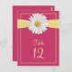 Watermelon pink and canary yellow Shasta daisy table number cards for your wedding, bat mitzvah, sweet 16 birthday, or other special occasions. Change the table number, add one card to your cart, then change the table number again, and add the next one to your cart. Repeat the process until you have all the table cards you need. To change the number, just type it in the box under personalise it. If you want to make other changes to the text, including changes to the font, font colour, font size, or text placement, use the customise it option. If you want a front and back option, order two of each and then glue them together.