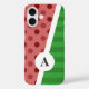 Decorate your phone with this red and green polka dot and stripe case! You can customise this case with your monogram initial at the bottom!