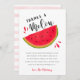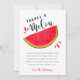 Cute little sweetie theme baby shower thank you card featuring illustration of a red watermelon with a smile. The message thanks guests for coming to the shower and for their gifts. Perfect for a summer shower.