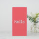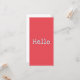 Make an impression with this bright card, which will get noticed with its watermelon red block colour. The default wording on the front is a simple 'Hello', but if you prefer, you can personalise the card with your own words. The reverse side of the card is blank for your own individual message. A bright and stylish choice with clear and minimalist appeal.