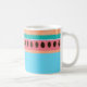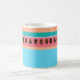 Here is a great summertime mug in vivid tropical summer colours!. It features a bold coral coloured stripe with watermelon seeds, a teal accent, and a peachy textured stripe accent that makes the bright blue background pop! Add your name, logo, events or anything else you want.