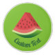 Ripe red watermelon slice. Custom background colour. Custom text.