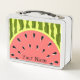 Design with a retro touch inspired by a watermelon featuring black seeds on a pink background and stripes in green and black. A customisable design for you to personalise with your own text, images and ideas. An original digital art image.