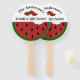 Cute, tropical, ripe red watermelon slices with a bite taken on white background. Large slice at bottom, and two small slices between text. Family name template at top, and "Family Reunion" text above large slice of watermelon. Design is on front and back.