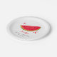 Cute little sweetie theme baby shower paper plate featuring illustration of a red watermelon with a cute smile. Perfect for a shower in the summer for a girl.