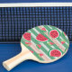 This pingpong paddle design features a watermelon related pattern with green and pink stripes emphasizing the joy and energy of summer season.