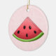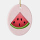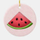 Add colour and freshness to your kitchen all year around by using this delightful, juicy Watermelon with Pink Background Ornament. Watermelon is a mouth-watering original illustration created by Debi Payne Designs. Its beautiful variegated shading of watermelon pink is the focal point of this luscious slice of watermelon resting within it thick crisp rind of variegated greens. Accenting this slice of watermelon are the random placed black seeds. This delightful slice of watermelon is over a soft modelled pink background. Personalise any of the Watermelon products by adding your name or any text you choose. Collect all the fruit and vegetable products in the Debi Payne Designs Kitchen Collection.