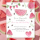 Kawaii and Cute watermelon Pink Girl 1st Birthday Party Invitation. Design features watercolor watermelons, watermelon-themed holiday flags, watermelon heart, watermelon seeds, "one in a melon!" and a watercolor smiling watermelon slice. Our sweet little girl is one in a melon!