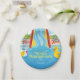 Make a big splash at a child's birthday party held at a water park, swim club, or splash pad with this paper plate. Water funnels down a bright yellow slide to crash into a bright blue pool filled with floaties and fun on a summer's day. Available with matching products.