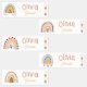 Brighten up your child's day with our Waterproof Boho Rainbow Name Labels! These delightful labels feature a trendy boho rainbow pattern, complete with cute heart details for a fun and playful look. Perfect for your little ones starting preschool, or kindergarten and needing to keep track of their belongings for school. Made to withstand daily wear and tear, these waterproof labels are a must-have for busy families on the go.