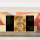 a simple minimalist beauty label in a black and gold theme. Contains areas for product usage instructions, ingredients, and your contact information