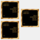 a waterproof luxury beauty label with a black background and metallic gold woven border