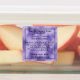A label for bath and body care products featuring a faux purple foil background and black text.