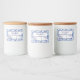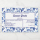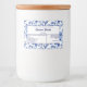 This floral editable soap box label measures 3 inches by 2 inches (76 mm by 51 mm) and is waterproof. It features a blue and white floral toile frame with a white area containing blue text with space for your company name, product name, ingredients, product description, and business contact information. This label is designed as a label for soap boxes or soap bars, but it could also be used a a label for cosmetic jars or candles.