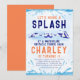 Invite your friends to come make a splash at your birthday bash with these waterslide obstacle course party invitations. Easily edit the wording and font colours with the online editor.
