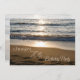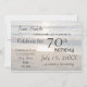 70th birthday party invitation card featuring a beautiful photo of the waves crashing on the beach at sunset. Customisable with your party details.