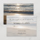 Wedding RSVP cards in featuring a beautiful photo of the waves crashing on the beach at sunset. Customisable with your wedding details, available in matching stamps, stickers, magnets and cards.