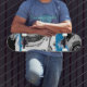 The Wave Mechanism – Custom Skateboard brings abstract art to the streets. Symmetrical circular motifs evoke gears in motion, while the bold blue wave band flows across the center, balancing structure with fluidity.