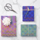 Gorgeous shades of blue, purple, green and gold come together in geometric patterns on a dreamy painted landscape for a bold, fresh and fun look, appropriate for all occasions! Set of three coordinating papers.