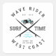 For the surf lover a design that says wave rider surf time west coast. This design looks really effective on these Stickers