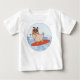 Wave riding happy pug dog on surfboard baby T-Shirt