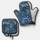 Wave Warrior Hawaiian Primitive Tapa Blue Oven Mitt & Pot Holder Set