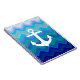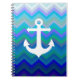 Simple plain white anchor silhouette on a beautiful water themed wavy background consisting of different shades and tints of blue.