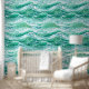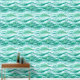 Ideal for any beachy establishment; coastal restaurant; coastline hotels; lodges; resorts and chalets, this teal; saige green, blue and white horizontal flowing ocean wave mural will transform any room. Bring the beach indoors, with this tidal wave seamless pattern that is easy to peel and stick to both smooth and textured walls.