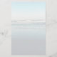 Monogrammed and lined personal writing paper. A light beach scene background has waves rolling in to the beach at low tide. Light lines cover the paper on the front with a template for three initial monogram at the top. The back of the paper also has the beach scene.