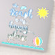 The Beach is my Happy Place stickers with script typography (beach background in letters). Extra fun beach element include blue shades/sunglasses, bright yellow sun, colourful beach ball and ocean waves. Use them together or separate on whatever you want to add a little beach love. Find more at Quote Life Boutique. Link below:
