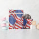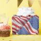 American flag waving in the wind soaring on a flagpole representing freedom and justice.