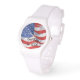 Bright colourful waving in the wind US flag with two lines of personalised custom text such as a name, phrase orAmerican Flag in red white and blue stars and stripes for a fresh Americana or Military gift idea.